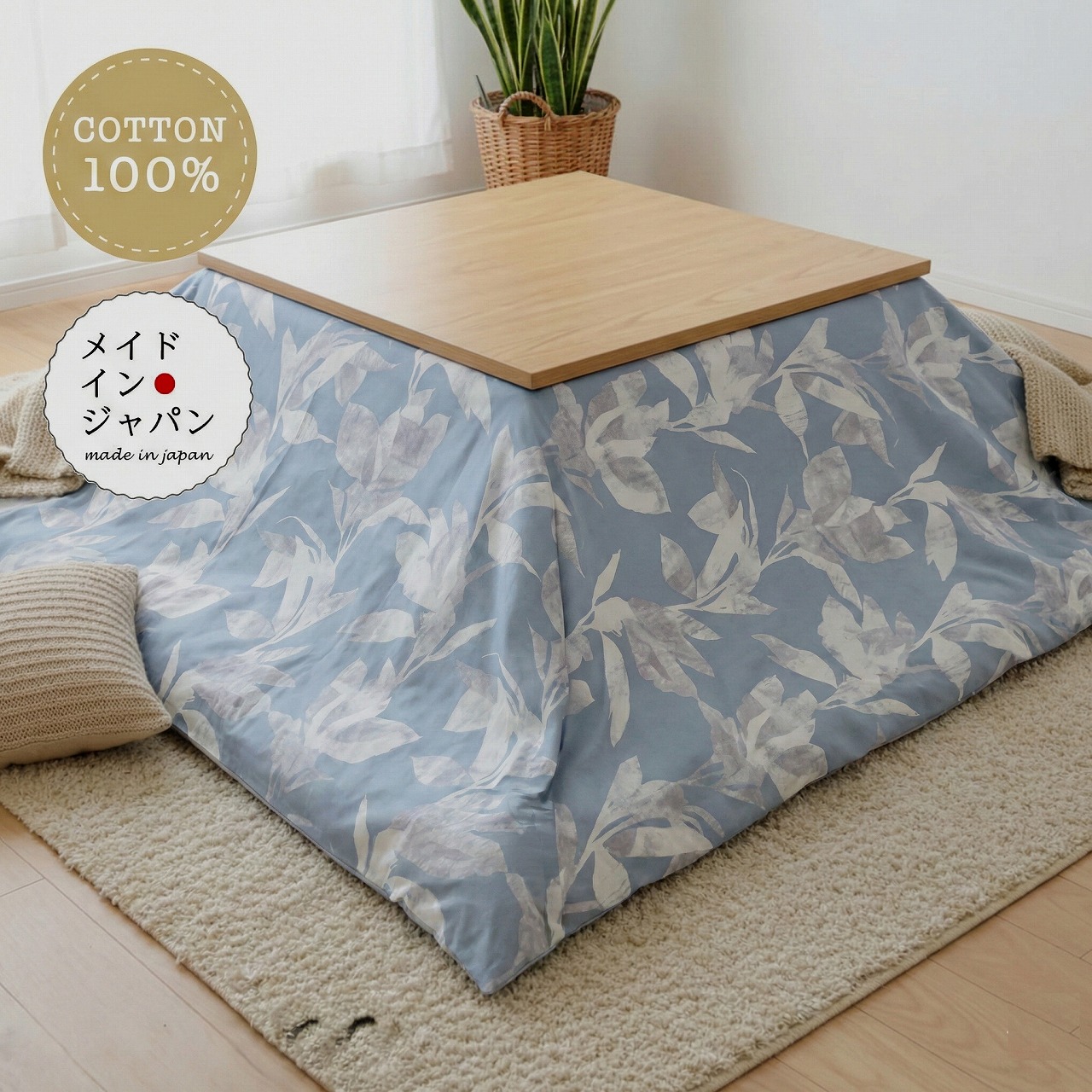 こたつ布団カバー オラクル ブルー 200×200cm 正方形 綿100%