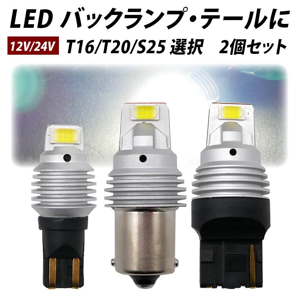 T16/T20/S25から選択 ホワイト×2個セット 12V/24V バックランプ・テールに最適なLEDバルブ 瞬間最大4000lm