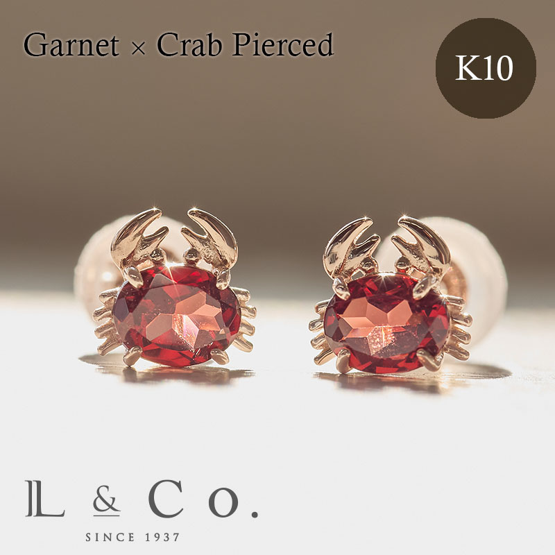 蟹 ピアス カニ かに レディース ラッキーモチーフ ガーネット スタッドピアス K10 10金 ピンクゴールド L&Co.(エルアンドコー)