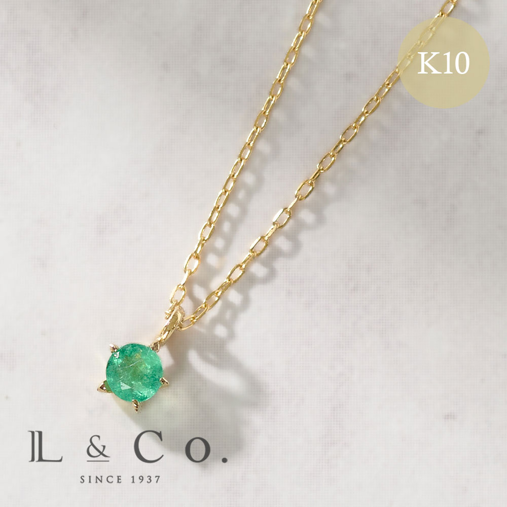 誕生石 5月 バースデー エメラルド K10 スターデザイン ネックレス ペンダント イエローゴールド プレゼント ギフト L&Co. エルアンドコー