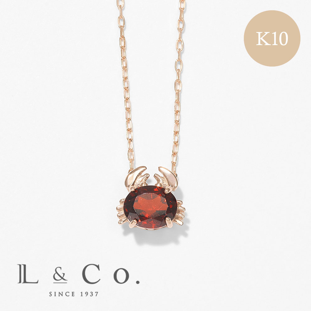 ネックレス K10 カニ ガーネット カラーストーン 10金 ピンクゴールド 蟹 かに シンプル かわいい 甲殻類 蟹座 L&Co. エルアンドコー