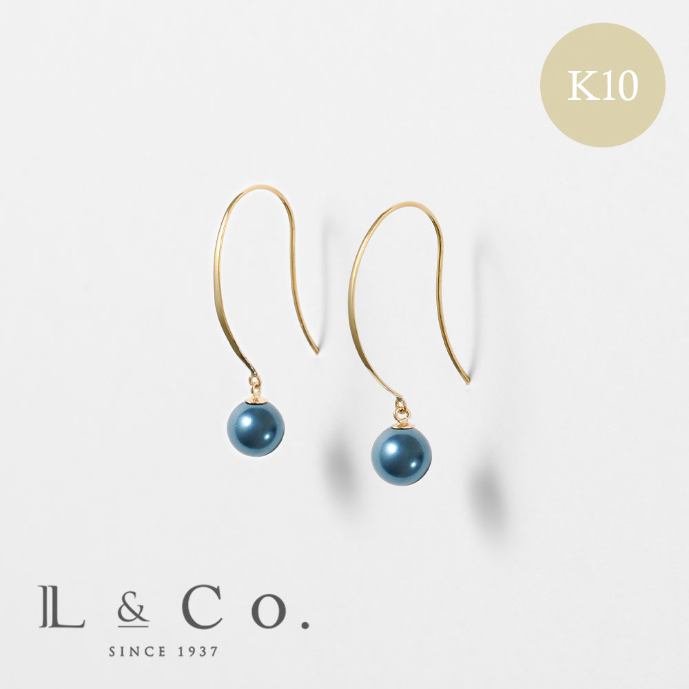 ピアス K10 イエローゴールド カラーシェルパール 真珠 6mm 青 ブルー ロイヤルブルー フック 大人 華やか 推し L&Co.(エルアンドコー)