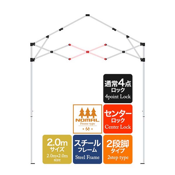 2.0mサイズ スチールフレーム(通常版) 2段脚 4点ロック/センターロック