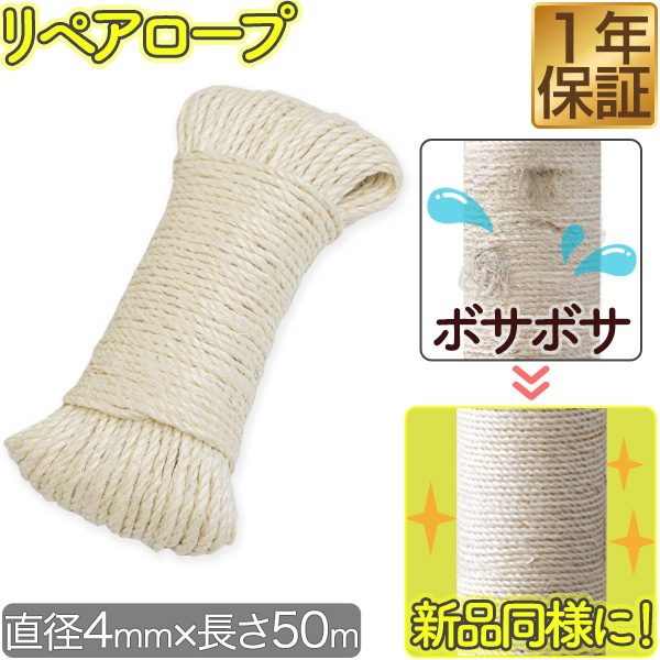 1年保証 猫 キャットツリー/木登りポール用 張替え用 麻ひも 50m 太さ4mm オプション 麻紐 キャットツリー/木登りキャットポール 紐巻き支柱用 送料無料