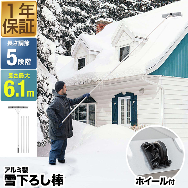 1年保証 雪おろし棒 長さ5段階 1.5m〜6.1m 連結式 アルミ 軽量 2.5kg 屋根雪おろし 雪かき 雪下ろし用具 雪下ろし棒 道具 スノーレーキ 送料無料