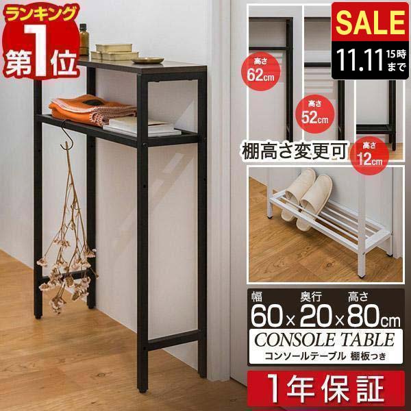 ヤフー1位 1年保証 コンソールテーブル 棚付き 高さ3段階 幅60cm×20cm 高さ80cm スリム 木目 飾り棚 廊下 玄関ラック テーブル 収納棚 おしゃれ 北欧 送料無料