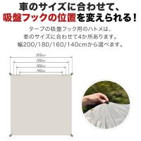 タープの吸盤フック固定用のハトメは4か所。車のルーフサイズに合わせて幅200/180/160/140cmから選べます。