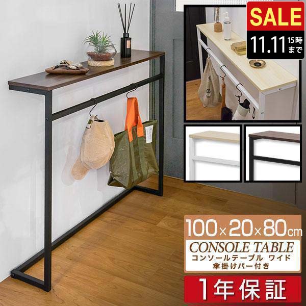 1年保証 コンソールテーブル 幅100cm×20cm 高さ80cm 木目 傘掛けバー付 スリム ワイド 飾り棚 廊下 玄関ラック サイドテーブル 収納棚 おしゃれ 送料無料