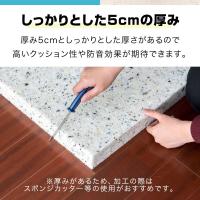 スポンジカッターなどで加工できる厚さ5cm。高いクッション性や防音効果が期待でき、ヘタったマットレスの補強や車中泊用のマットレスとしても最適です。