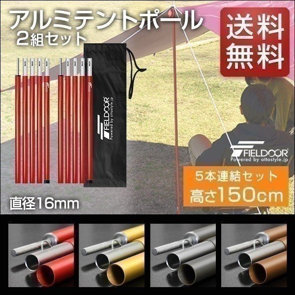 1年保証 テントポール アルミ 2本セット 5本連結 150cm 直径16mm 分割式 サブポール タープポール キャノピー ポール タープ テント キャンプ 送料無料