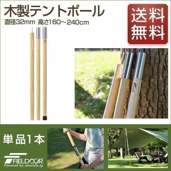 1年保証 テントポール 木製テントポール ウッド 直径 32mm 高さ160 - 240cm 木 木製 サブポール タープポール キャノピー 用 ポール 分割式 テント 送料無料