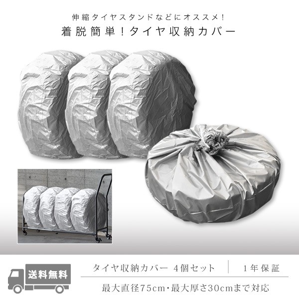 1年保証 タイヤカバー タイヤ カバー 4個セット 最大直径:75cm 最大厚さ:30cm 対応 着脱簡単 タイヤ収納カバー タイヤ収納 タイヤ保管 夏用 送料無料