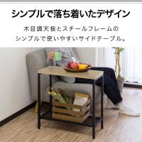 木目調天板とスチールフレームの シンプルで使いやすいサイドテーブル。 お部屋のインテリアとも合わせやすく テイストを選ばないアイテムです。