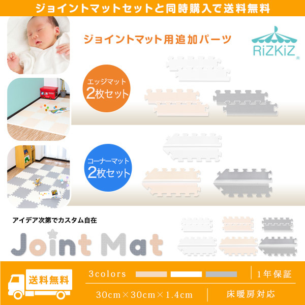 ジョイントマット36枚セットと同時購入で送料無料 30cm エッジマット2枚 コーナーマット2枚 厚さ1.4cm 抗菌 床暖房対応 防音 キズ防止 RiZKiZ 同時購入 送料無料