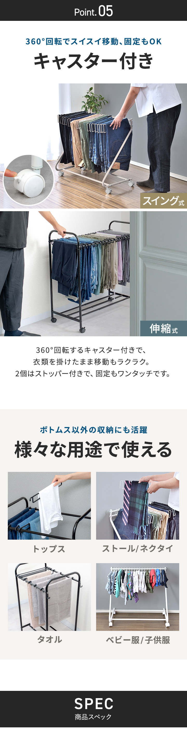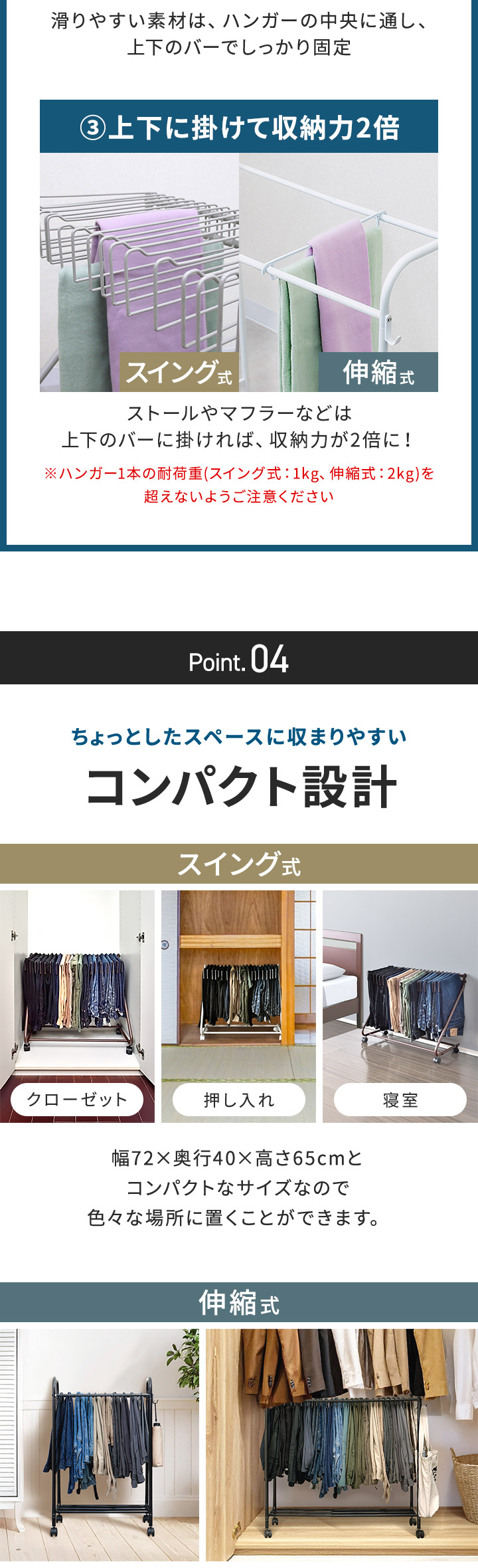 | 耐荷重: ハンガー1本あたり:1kg ※全体の耐荷重15kg |