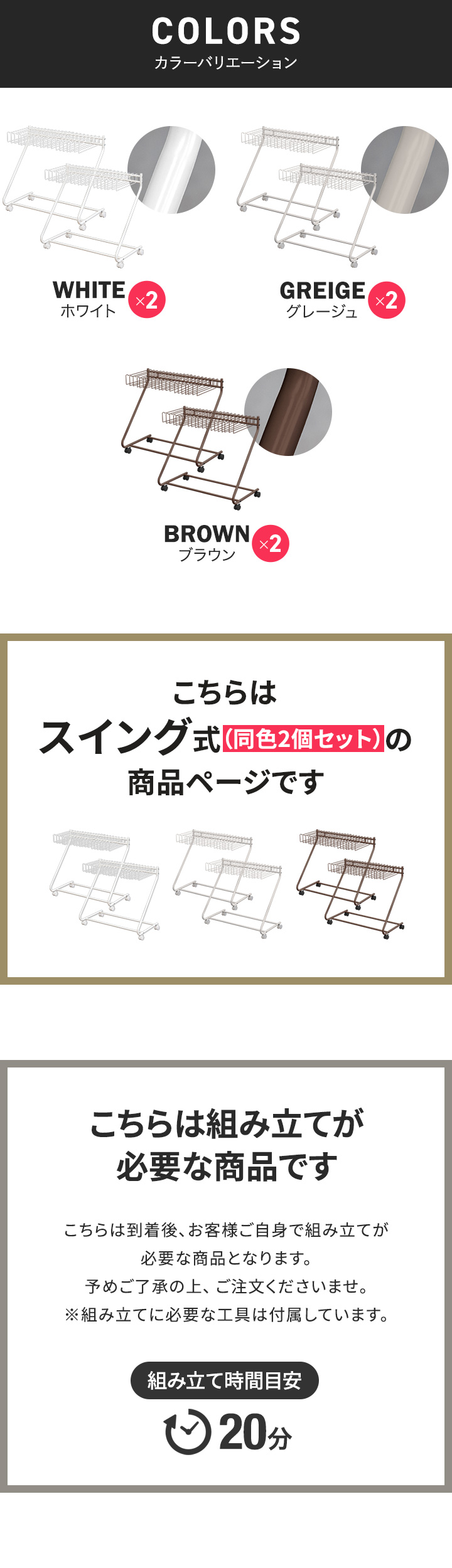 | カラー: ・ホワイト×2 ・グレージュ×2 ・ブラウン×2 |