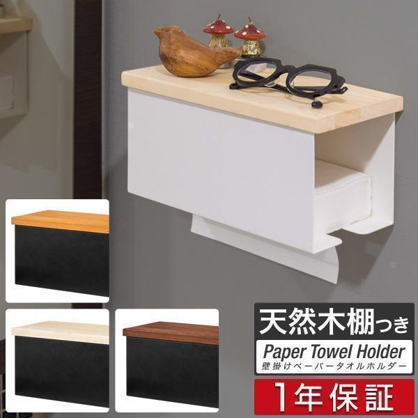 1年保証 ペーパータオルホルダー 壁掛け 幅24cm ねじ止め/マグネット固定 棚付き 木製 ボックスタイプ 北欧 耐荷重 5kg アイアン 天板 天然木 送料無料