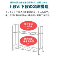 ラックは上下段の2段構造になっているので、掛け布団と敷き布団など種類別に収納できます。