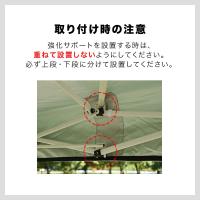 強化サポートを取り付けることで、サイドフレームを固定することができます。サイドフレームのたわみ・ゆがみが軽減され、風などによる破損を抑えることができます。