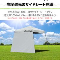完全遮光の1.8mポータブルタープテント用サイドシートです。生地は遮光率100%・UVカット率は99.8%!遮熱効果もあるので真夏の日よけに最適です。