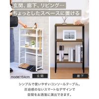 「ちょっとしたスペースに置けるシンプルで使いやすいコンソールテーブル。圧迫感のないスマートなデザインは飾り棚・収納ラックとして空間をお洒落に演出できます。