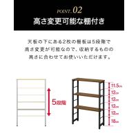天板の下にある2枚の棚板は5段階で高さ変更が可能なので、収納するものの高さに合わせてお使いいただけます。