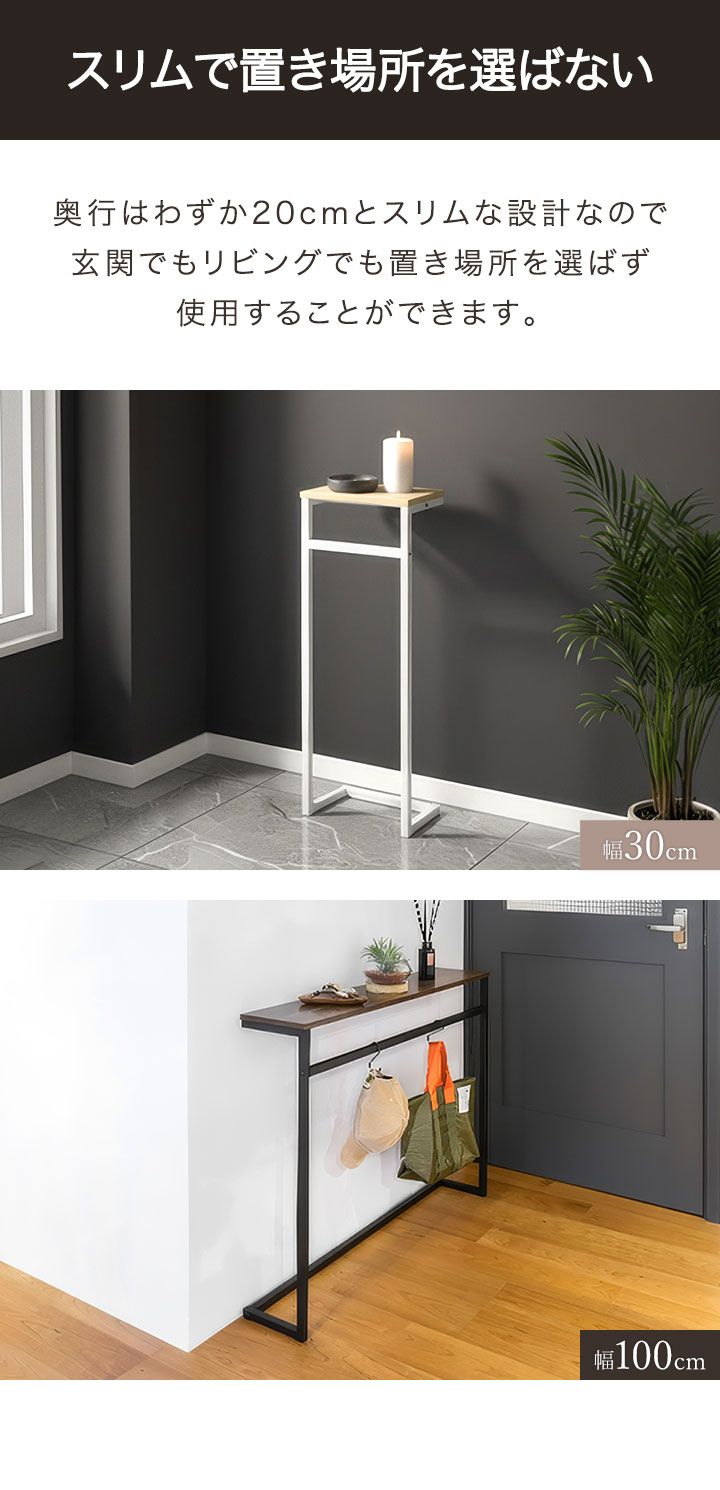 1年保証 コンソールテーブル スリム 玄関 傘掛けバー付き 幅30×奥行20 高さ80cm 玄関収納 飾り棚 廊下 玄関テーブル スリムラック サイドテーブル 送料無料