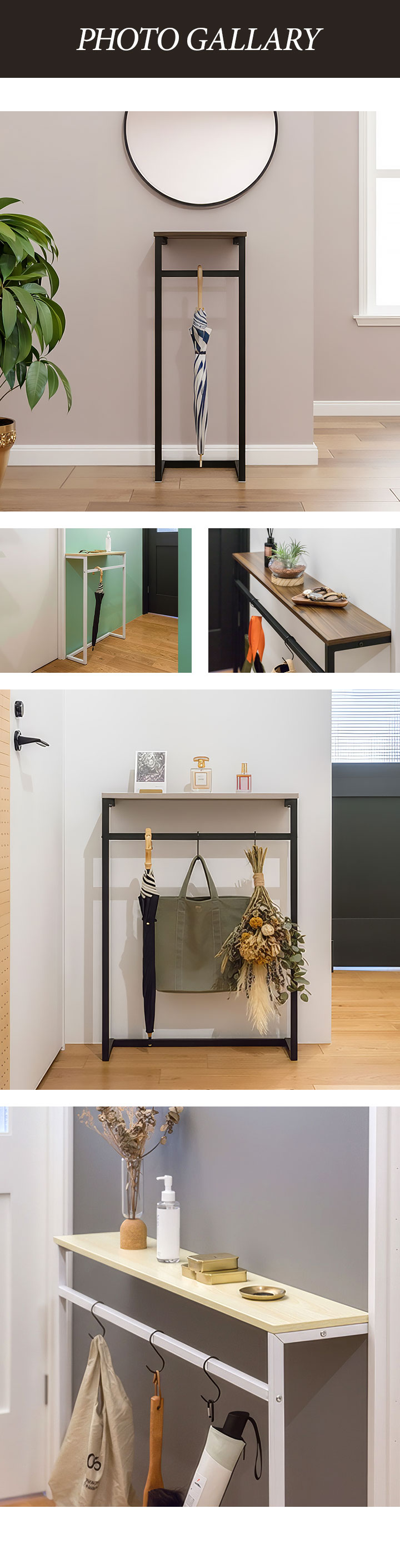 木目調天板とスチールフレームのシンプルで使いやすいコンソールテーブル。圧迫感のないスマートなデザインで空間をおしゃれに演出することができます。