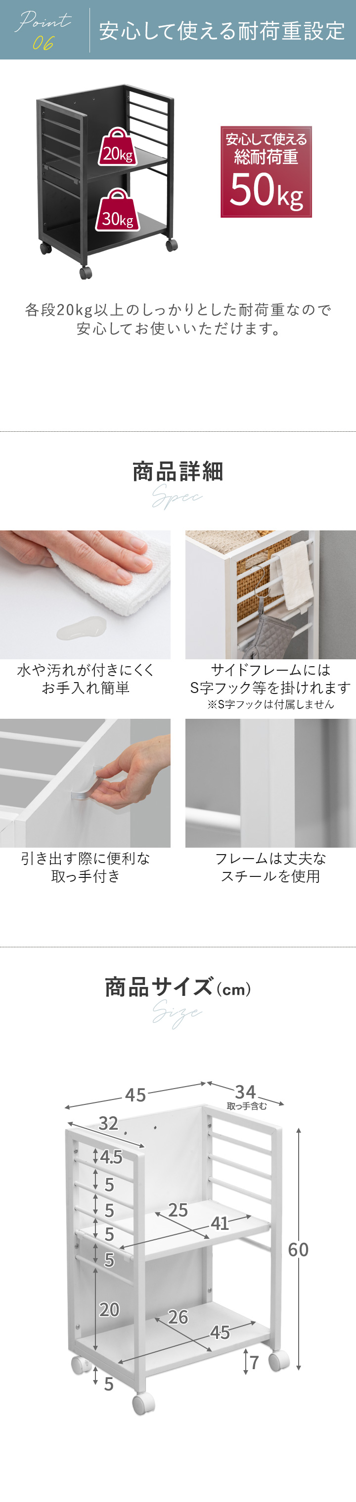 | 耐荷重: 可動棚:20kg 最下段:30kg 全体:50kg |