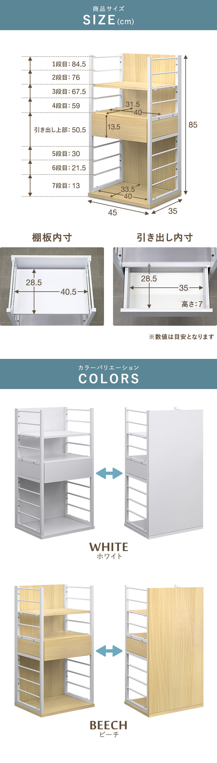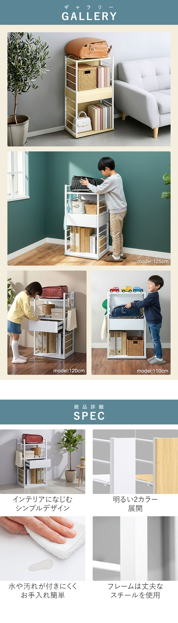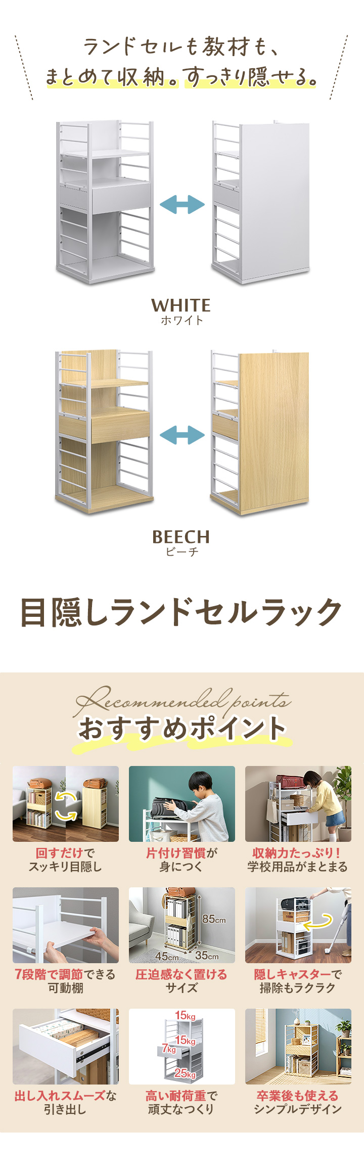 1年保証 ランドセルラック キャスター付き 目隠しワゴン RiZKiZ 幅45cm×高さ85cm ランドセル収納 スリム 可動棚 引出し付き お片付け 本棚 送料無料