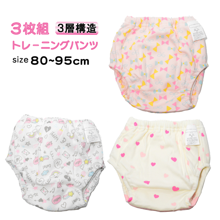 トレーニングパンツ 3層 トイトレ トレパン 3枚セット おもらし おねしょ 布パンツ 女の子 かわいい