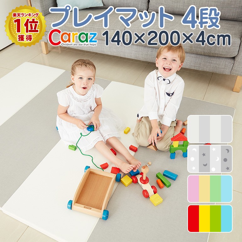 Caraz カラズ ベビー プレイマット 4段 ベーシック 140×200×4cm 4段 ベビー おしゃれ 折りたたみ 韓国マット ムーン・スター moon-star/クリーム/レインボー