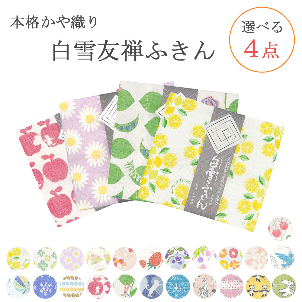 白雪ふきん 友禅染 選べる 4枚セット キッチンクロス 台ふきん 食器拭き 人気柄 お土産 ギフト