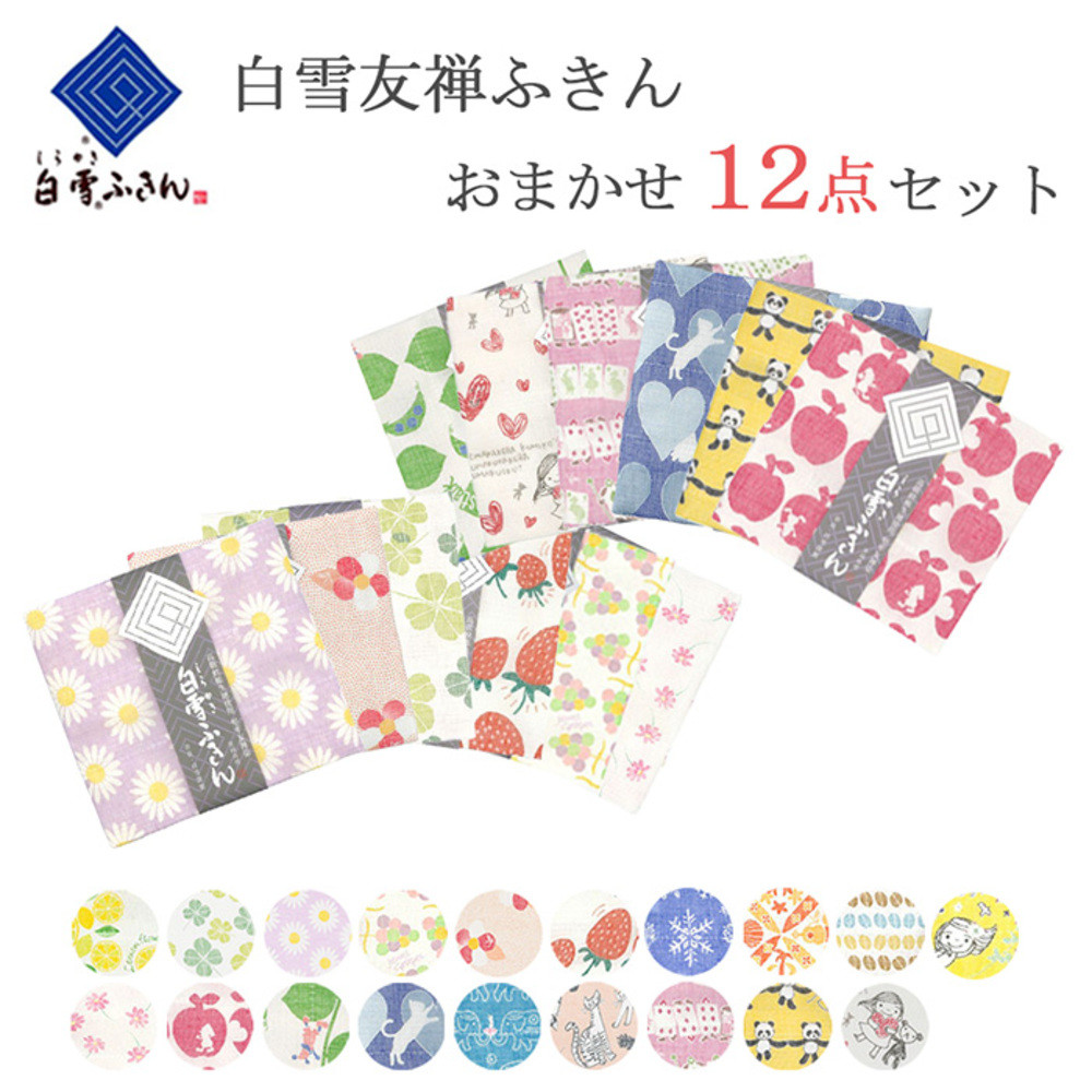 白雪ふきん 友禅染 当店おまかせセット 12枚セット キッチンクロス 台ふきん 食器拭き 人気柄