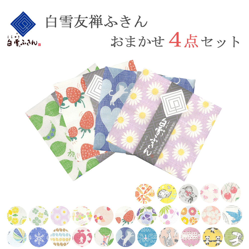 白雪ふきん 友禅染 当店おまかせセット 4枚セット キッチンクロス 台ふきん 食器拭き 人気柄