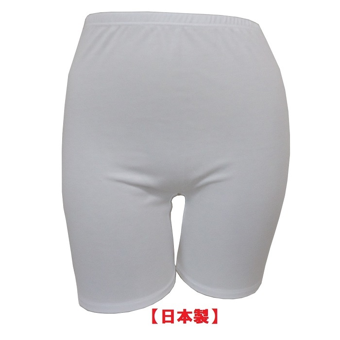 ホワイト 綿混太もも汗取り三分丈ボトム 【日本製】 ブライダルインナーにも 吸汗速乾素材【送料無料】
