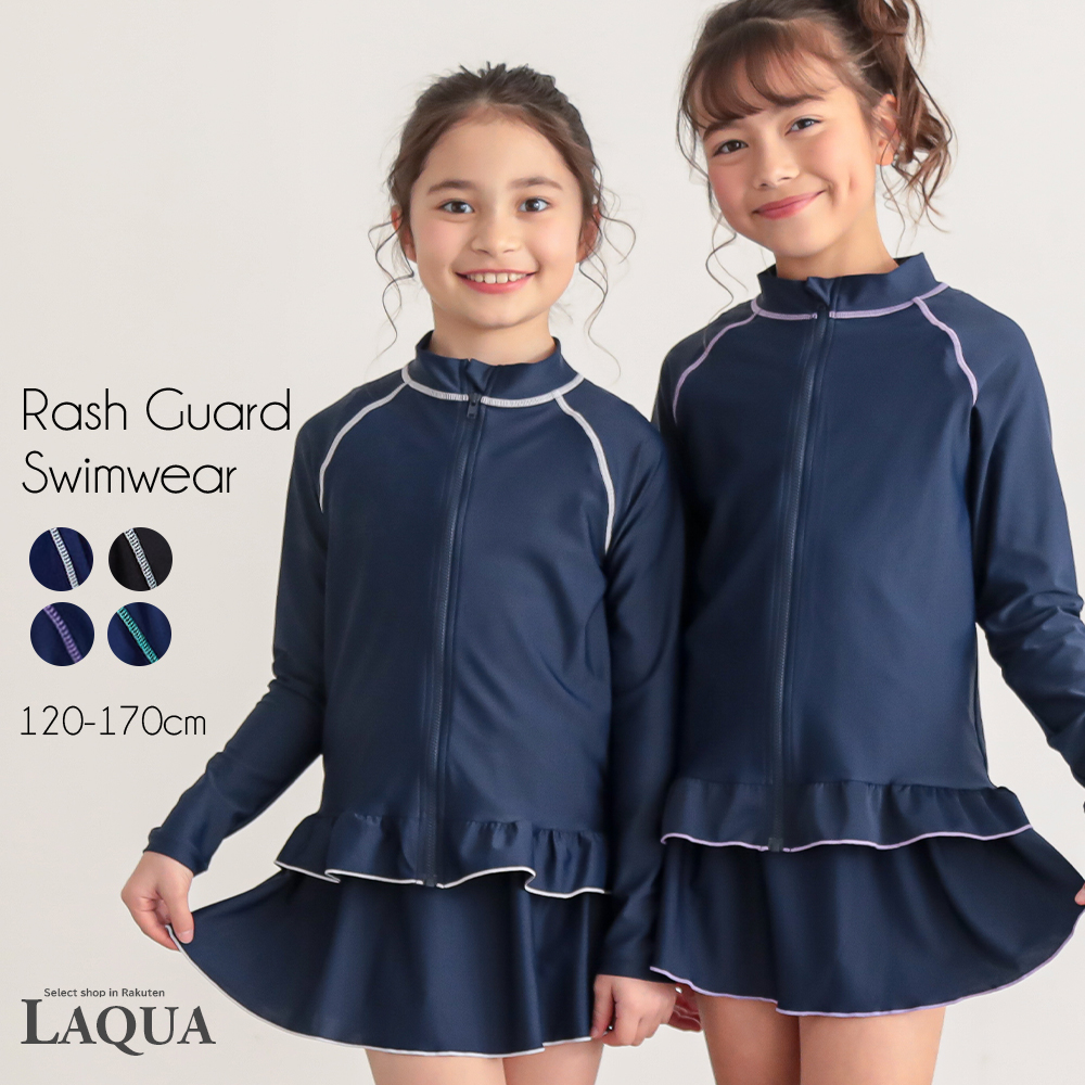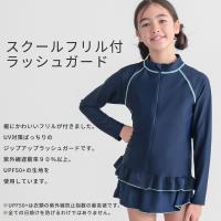 ラッシュガード キッズ スクール 水着 ジップアップ 紫外線対策 女の子 長袖 ファスナー 無地 学校 ネイビー 紺 UPF50+ UVカット SPF50 120 130 140 150 160 170