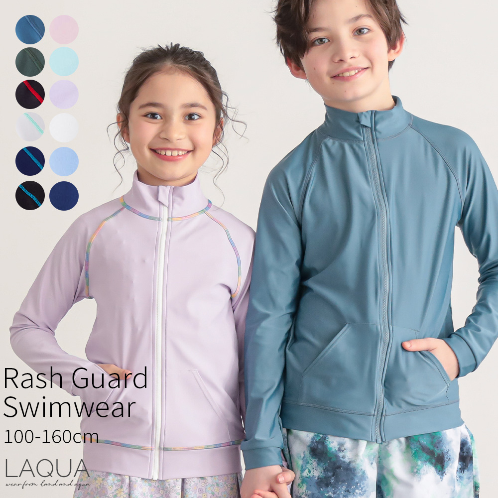 ラッシュガード キッズ 子供 無地 ジップアップ 水着 スタンドカラー 男の子 女の子 ベビー UPF50+ UVカット フードなし 100 100 110 120 130 140 150 160
