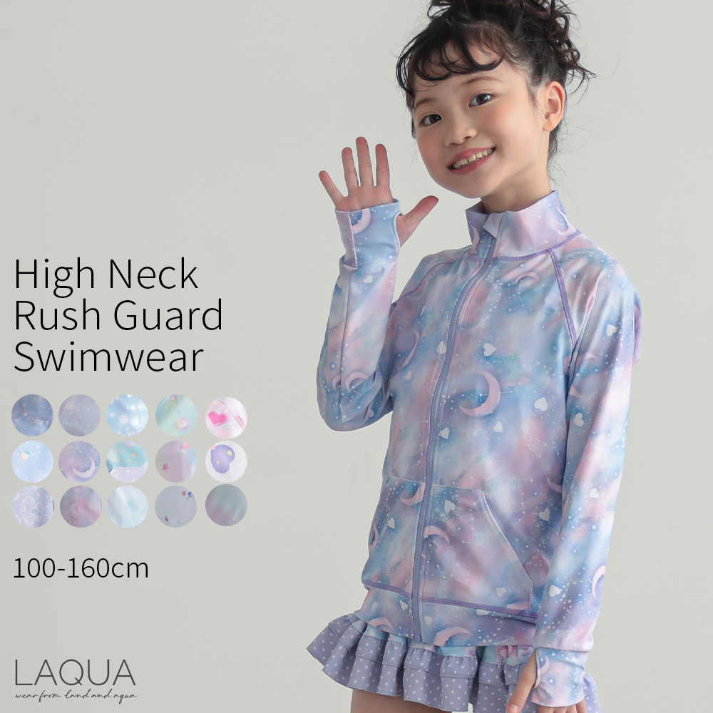 ラッシュガード キッズ ハイネック 子供 女の子 UVカット 紫外線対策 フードなし 100 110 120 130 140 150 160 送料無料 かわいい 子供 学校用 幼稚園 保育園