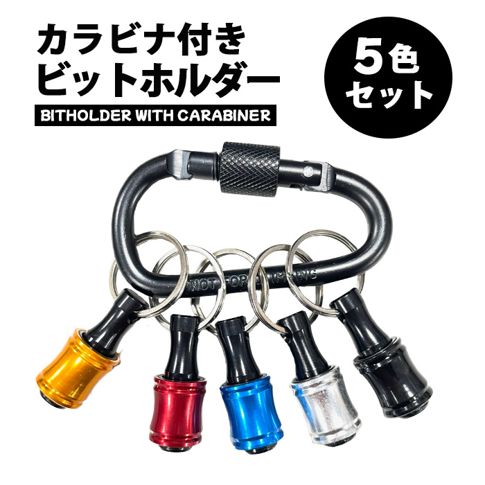 カラビナ付きビットホルダー 5色 5本セット 落ちない ビット収納 インパクト ソケット ドライバー ビット ビットホルダー 送料無料 ###カラビナSKJG-5PC###