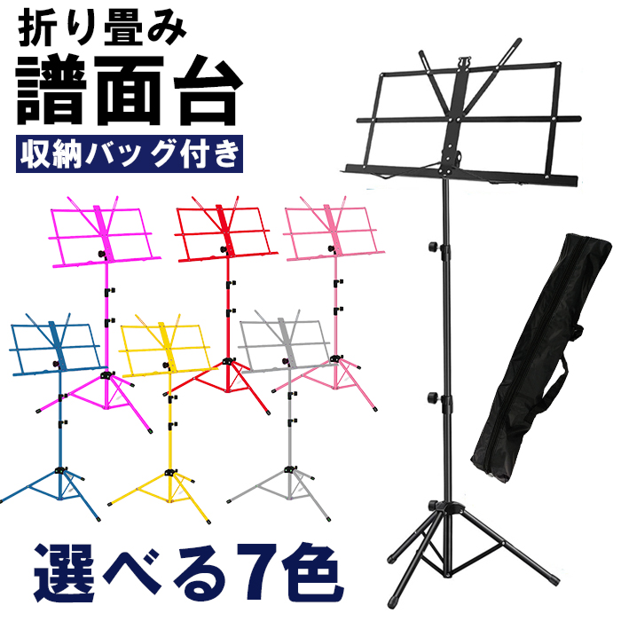 選べる7色 譜面台 折りたたみ 軽量 収納袋付き スチール製 コンパクト 楽譜スタンド 持ち運びスタンド バンドスコア 高さ調節 送料無料 ###譜面台XPJ-02-###