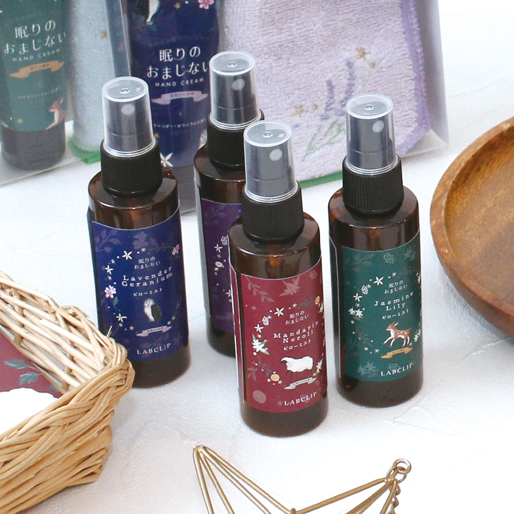 | おやすみ前には 心地よいひとときを。 眠りをテーマにした 癒しの香りに、消臭成分配合の ピローミストが新登場。 寝室の空間や、枕などの寝具に シュッと一吹きで 心地よい香りに包まれて。 |