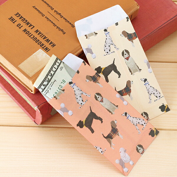 ぽち袋 5枚入り ドッグ (ホワイト/グリーン/ピンク)《お年玉/封筒/おしゃれ/大人/かわいい/可愛い》