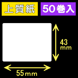 55T43S ハロー用無地サーマルラベル(55mm×43mm)上質紙 1巻当り400枚 50巻 /商品番号 [30523]