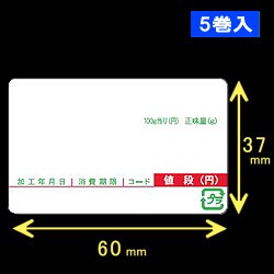 計量用サーマルラベル(60×37mm)内巻 タイトル印刷有 1巻当り4200枚 5巻 /商品番号:[30902]