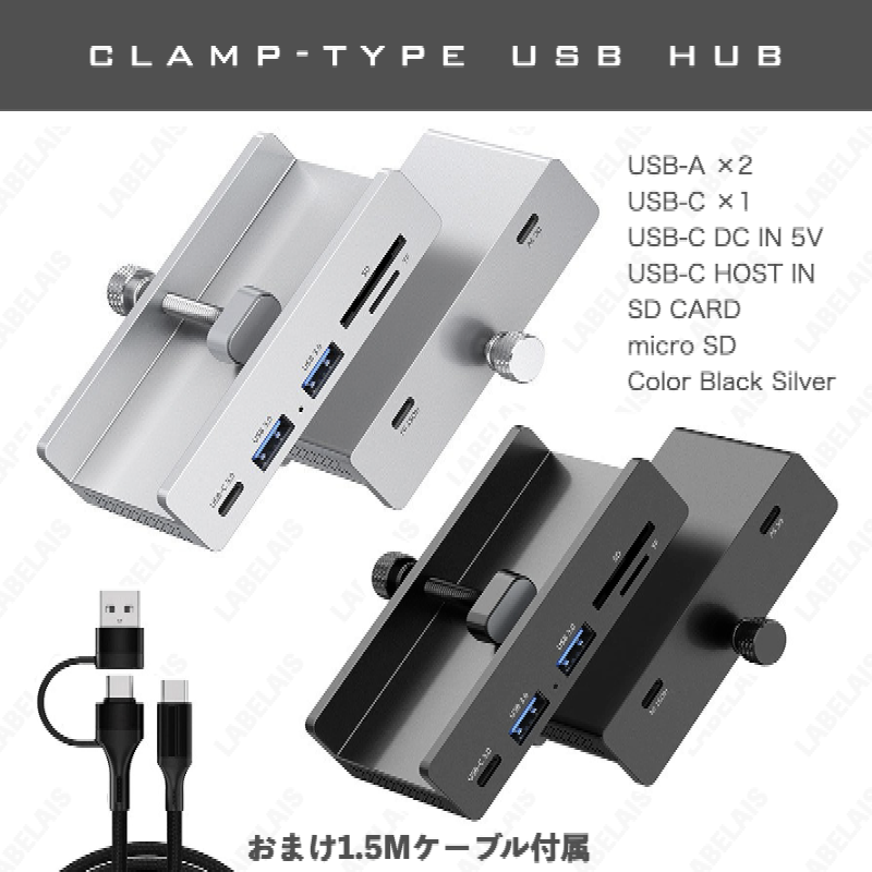 USBハブ Type-C ハブ クランプ式 Mac Windows 固定 USB A カードリーダー SD microSD ドッキングステーション ドッキングハブ カード IOS Android ドック