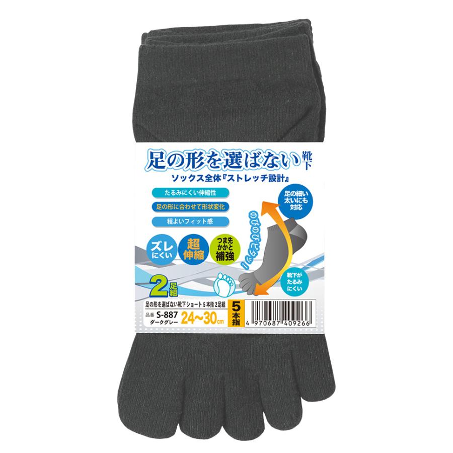 おたふく手袋 メンズ 靴下 ソックス 5本指 S887 2足組 ダークグレー OTAFUKU GLOVE ショートタイプ Fサイズ ピッタリフィット 踵補強 旅行 スポーツ