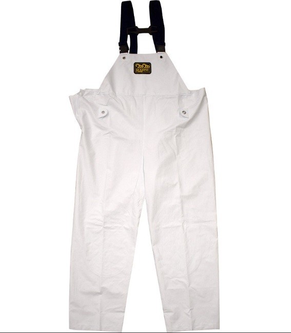 【上下別売り】弘進ゴム 日本製生地使用 カッパ 漁師 水産合羽 雨合羽 サロペット 防水設計 耐寒配合 マリンフォードMFV502胸付きズボン ホワイト
