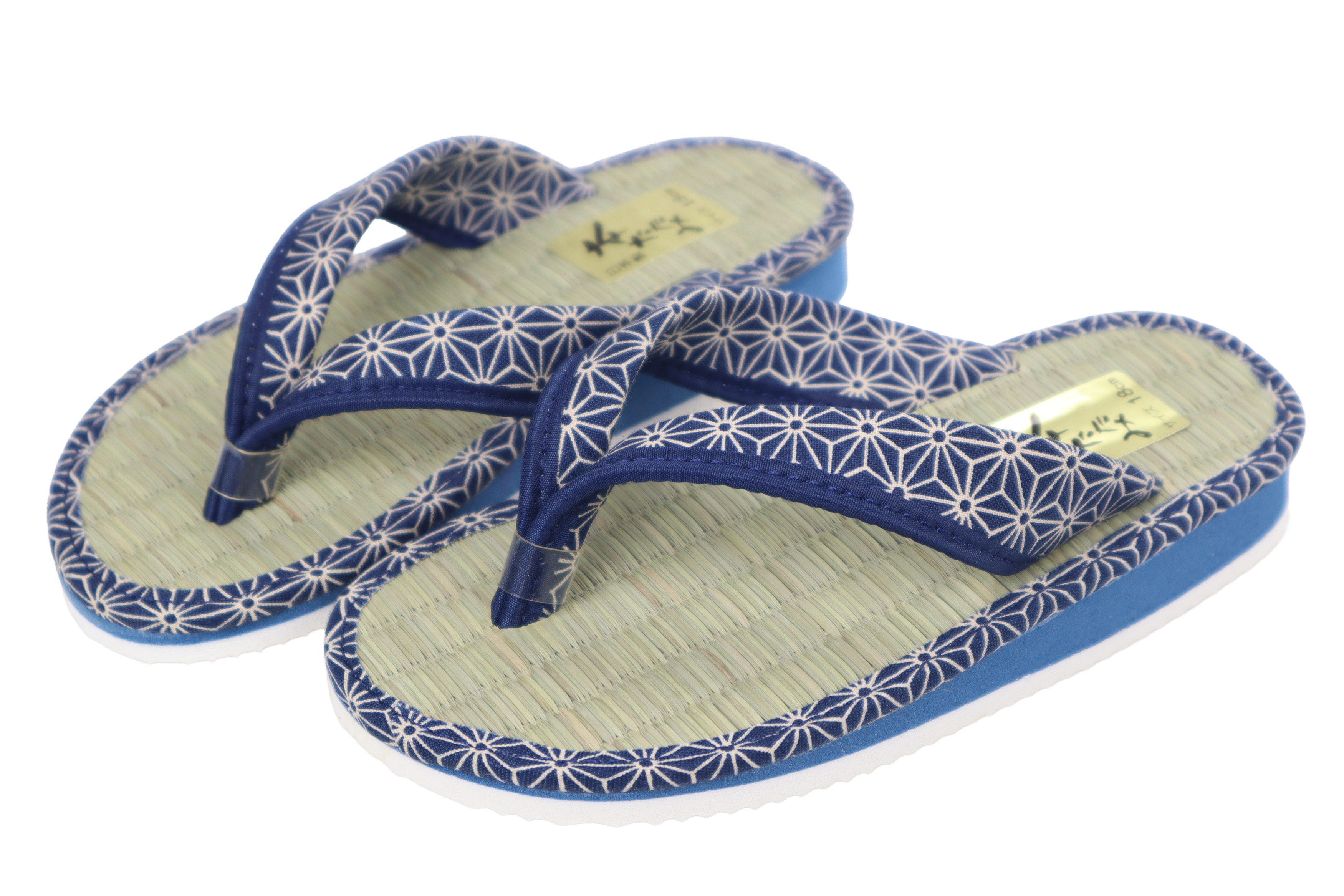 浴衣や甚平などの和装にピッタリな子供用タタミサンダル白底なので室内・室外どちらでも対応、スリッパ代わりにもお使いいただけます鼻緒タイプですが指に触れる部分にガードを付けています日本製の本たたみを使用し汗をかいても快適さをキープスポンジ&ゴム底なので足への衝撃を軽減し、滑りにくいので歩行をサポート春先の花見の時期から夏の祭り、秋の納涼祭などで活躍【素材】鼻緒部分:和柄生地インソール部分:タタミ素材ソール部分:合成底(EVA底)