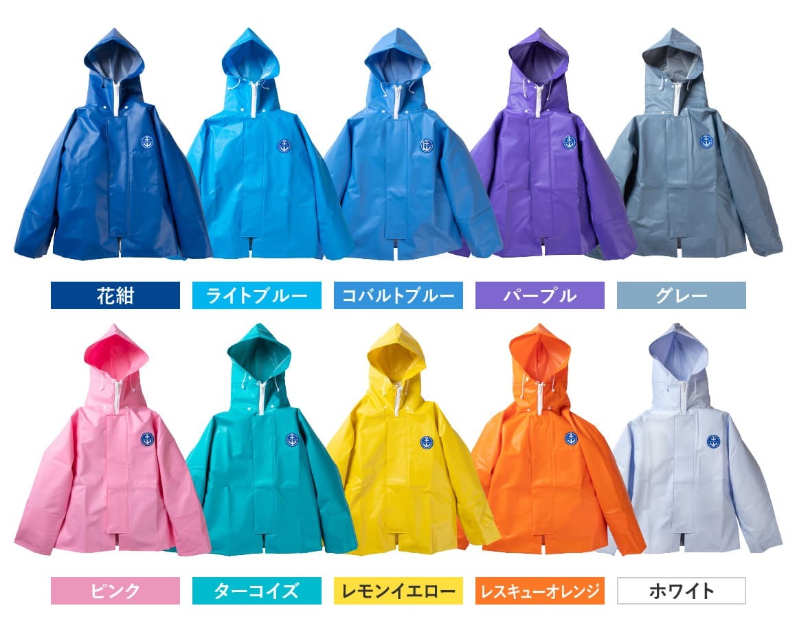 プロ仕様の水産合羽です。こちらはLLサイズまでの購入可能です。【ターコイズ】【花紺】以外はメーカー取り寄せの為発送まで一週間ほどいただきます。漁師の方はもちろん水場でのお仕事、釣りなど様々な現場に活躍!!・襟に収納可能な一体型パーカー・袖口から水の侵入を防ぐ二重袖・二重前立てYKKジッパー・胸の内側にポケット付き・豊富なカラーバリエーション・厚さ0.35mm・柔らかく生地裏はサラサラしており着心地が良い◇素材:表/PVC 裏/ポリエステル
